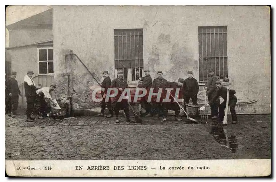 Cartes postales En Arriere des Lignes La Corvee du matin Militaria