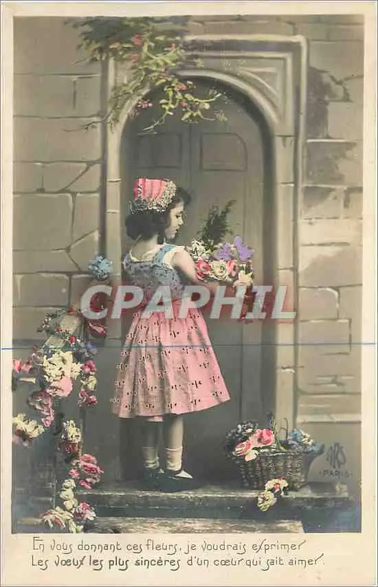 Cartes postales En vous donnant ces fleurs je voudrais exprime Enfant