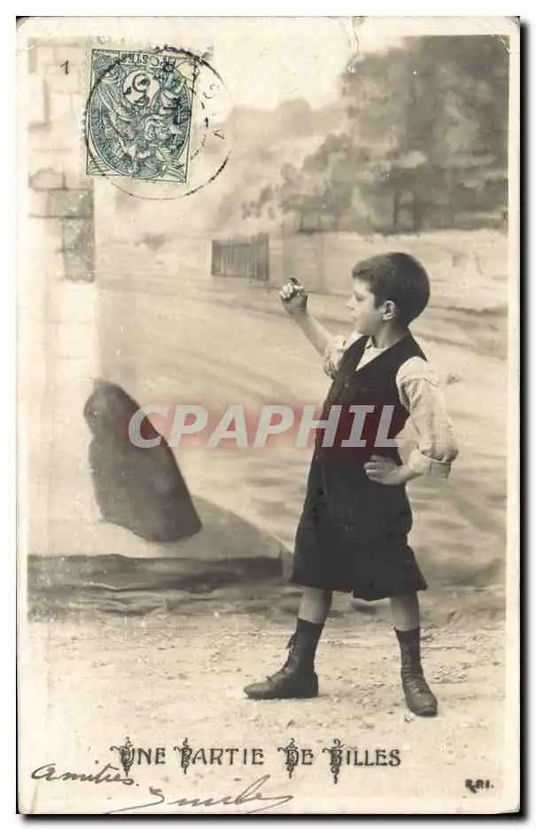 Cartes postales Enfant Une partie de bille