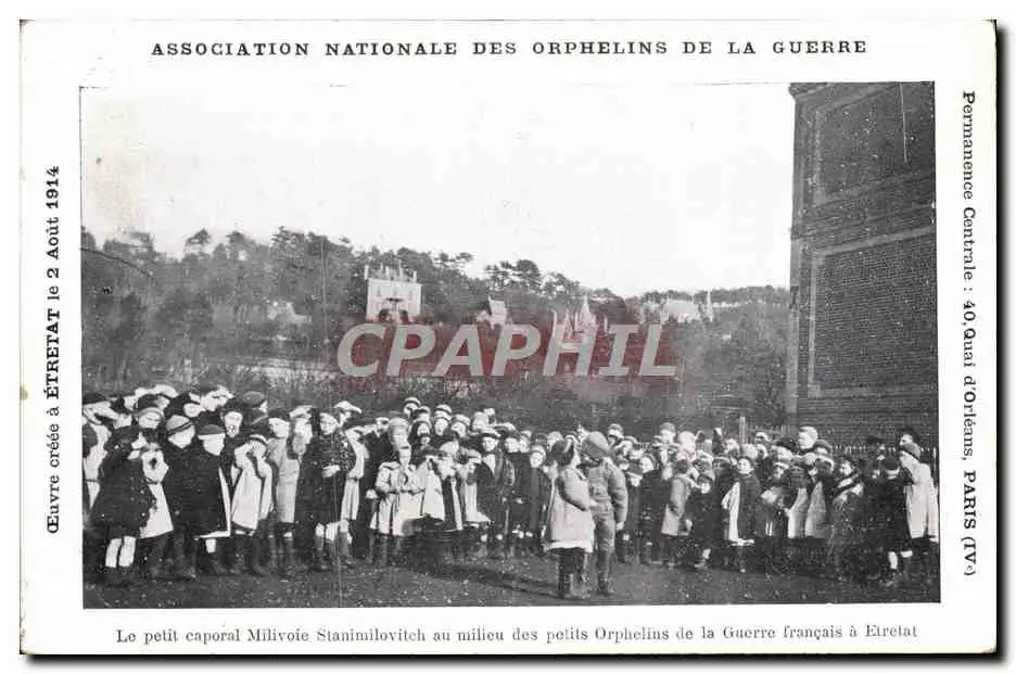 Cartes postales Enfants Orphelinat Orphelins de guerre Le petit caporal Millivoie Stanimilovitch au milieu des p