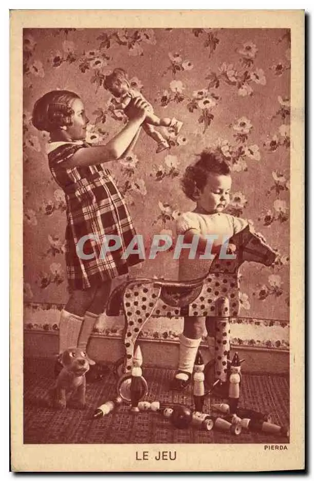 Cartes postales Enfants le jeu Cheval en bois Poupee