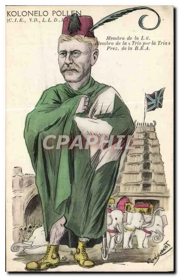 Cartes postales Esperanto Kolonelo Pollen Elephant