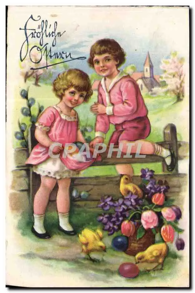 Cartes postales FAntaisie Enfants Paques Easter Poussins