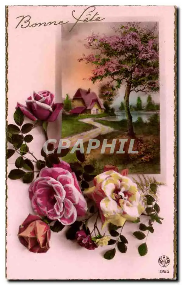 Cartes postales FAntaisie Voeux Bonne fete Fleurs