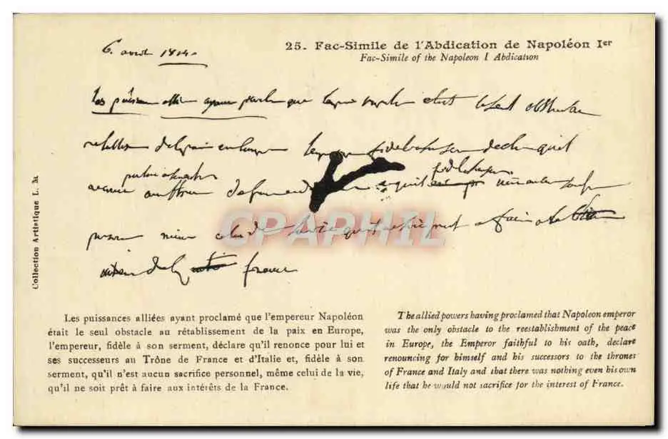 Cartes postales Fac Simile de l'abdication de Napoleon 1er