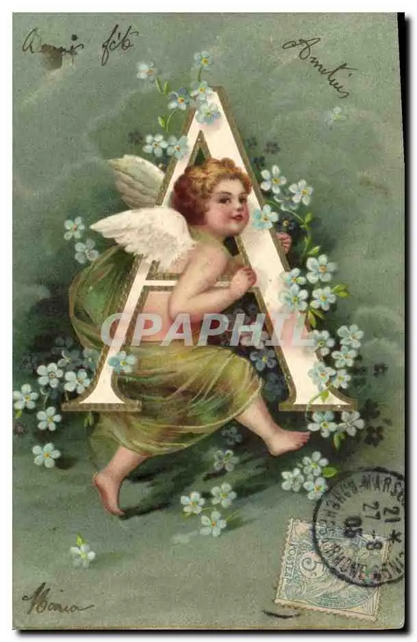 Cartes postales Fantaisie Ange Lettres Lettre A