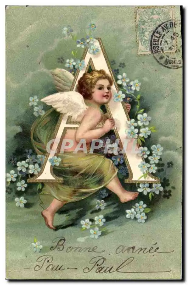 Cartes postales Fantaisie Ange Lettres Lettre A