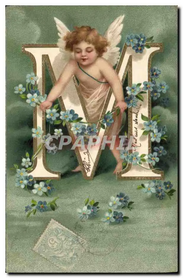 Cartes postales Fantaisie Ange Lettres Lettre M