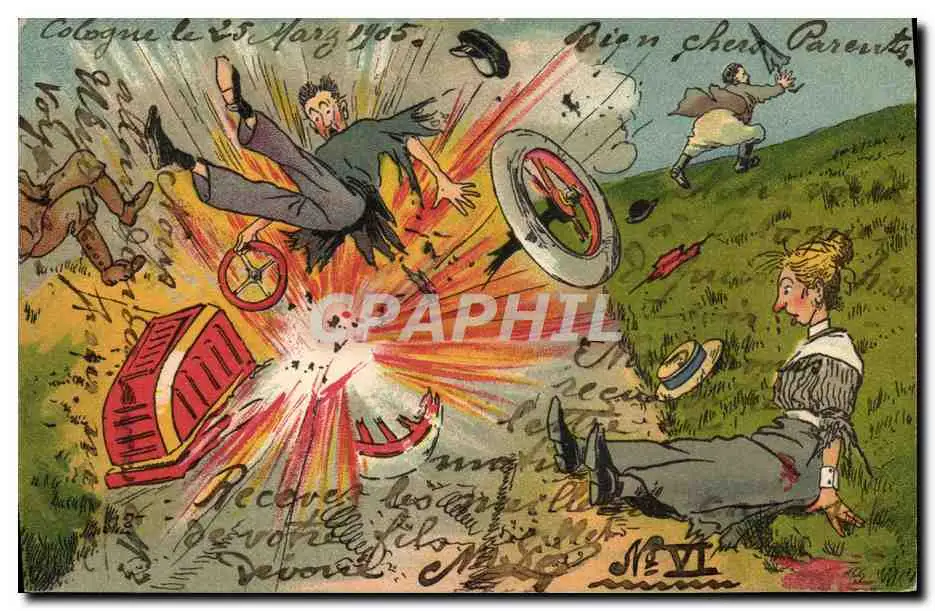 Cartes postales Fantaisie Automobile Explosion