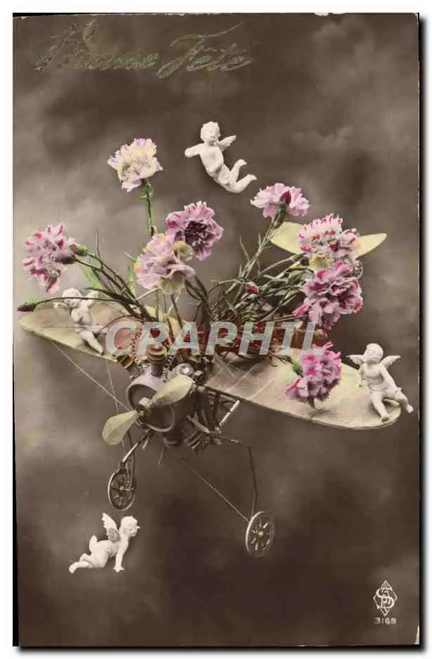 Cartes postales Fantaisie Avion Aviation Fleurs