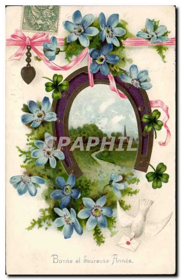 Cartes postales Fantaisie Bonne et heureuse annee Colombe Fer a cheval