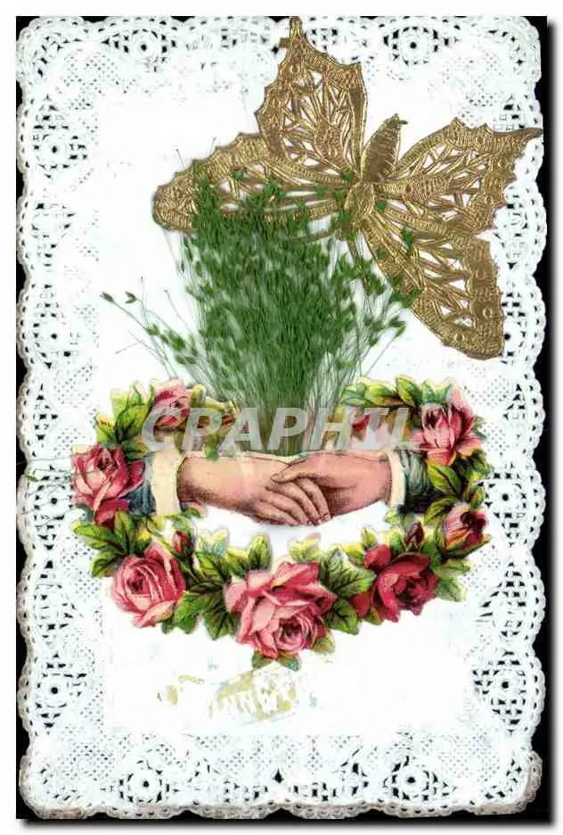 Cartes postales Fantaisie Brodee Main Fleurs Papillon
