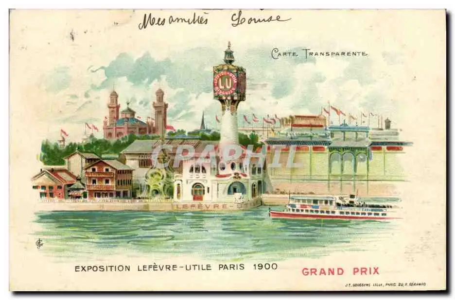 Cartes postales Fantaisie Carte transparente Exposition Lefevre Utile Paris 1900 Grand Prix Bateau
