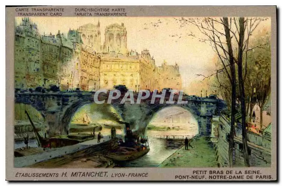 Cartes postales Fantaisie Carte transparente Petit Bras de la Seine Pont Neuf Notre Dame de Paris Mitanchet Lyon