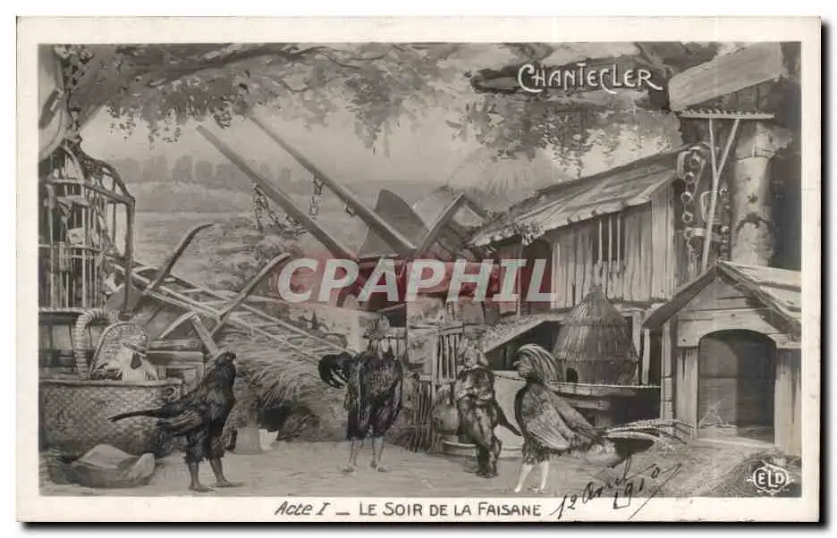 Cartes postales Fantaisie Chantecler Acte 1 Le soir de la faisane Coq