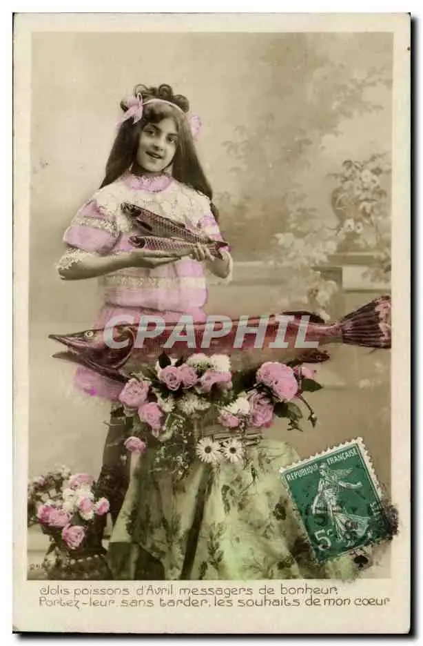 Cartes postales Fantaisie Enfant Jolis poissons d&#39avril messagers de bonheur Portez leur sans tarder les souh