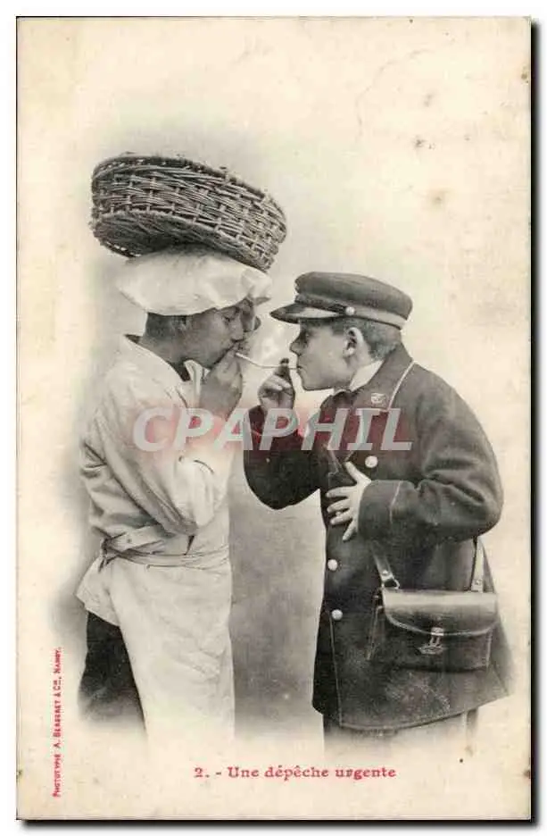 Cartes postales Fantaisie Enfant Une depeche urgente Postier Postes TElegraphes TOP