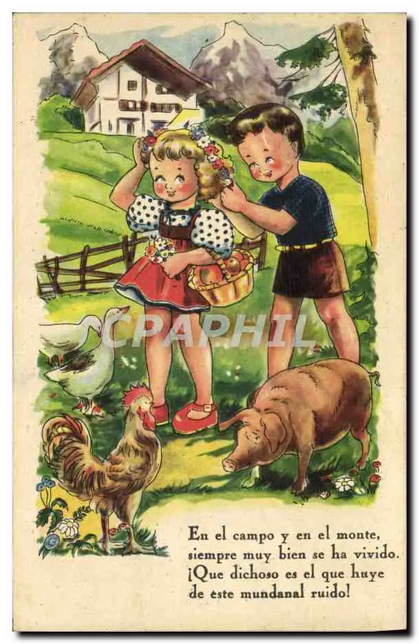 Cartes postales Fantaisie Enfant sCochon Porc Coq Canard