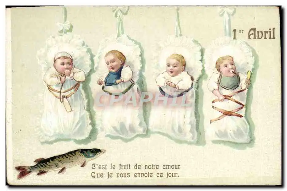 Cartes postales Fantaisie Enfants Bebes 1er Avril Poisson