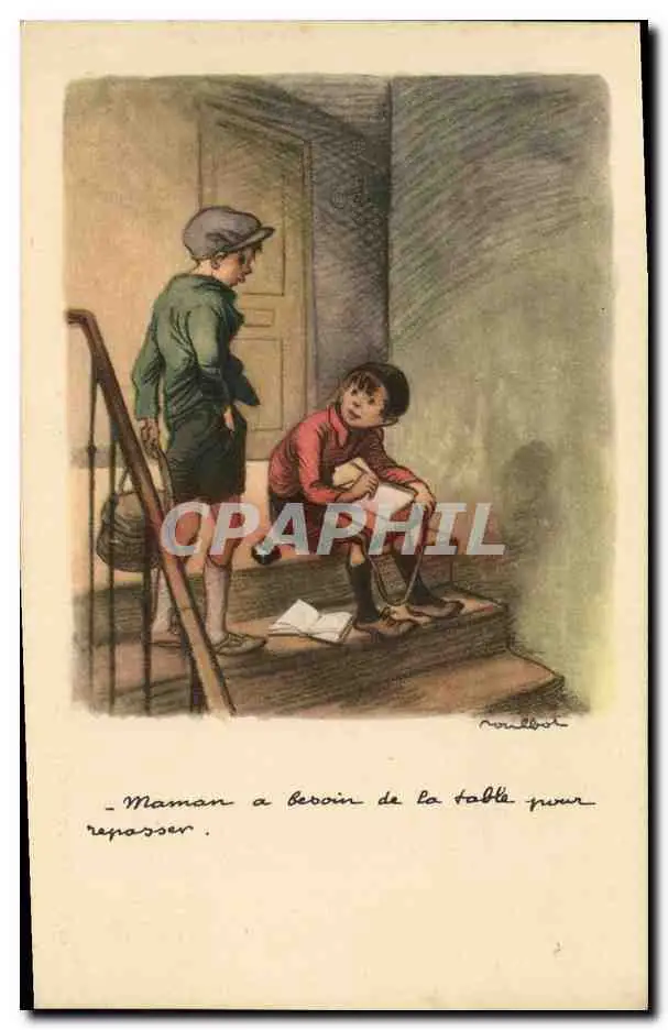 Cartes postales Fantaisie Enfants Illustrateur Poulbot Maman a besoin de la table pour repasser