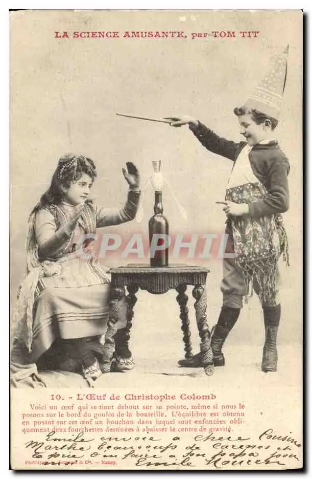 Cartes postales Fantaisie Enfants La science amusante par Tom Tit L'oeuf de Christophe Colomb