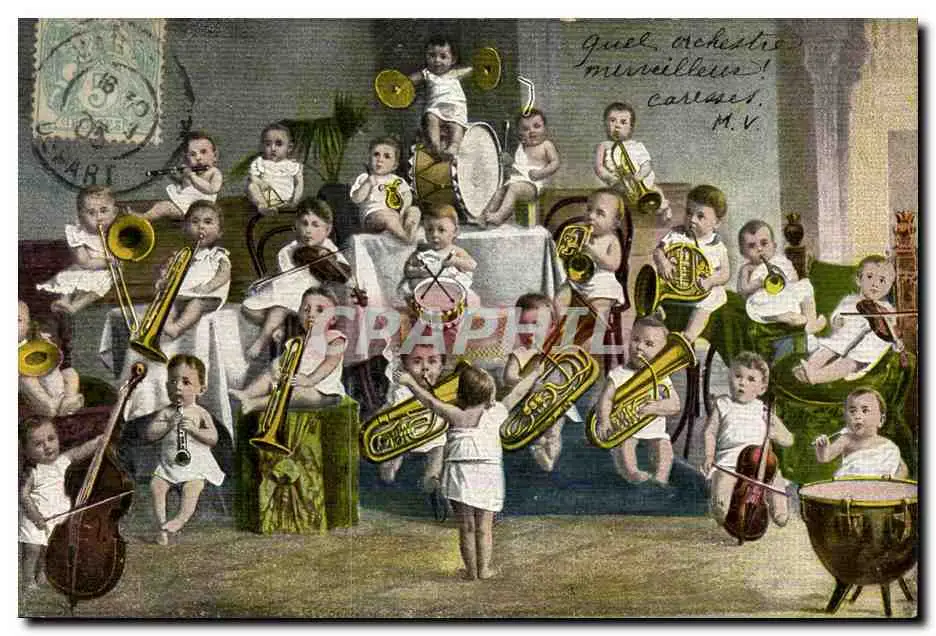 Cartes postales Fantaisie Enfants Musique Cuivres