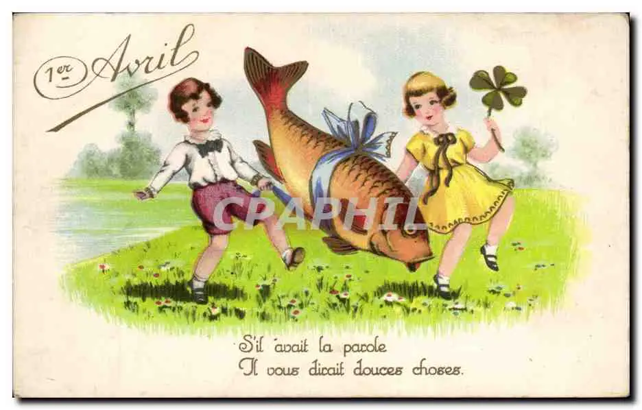 Cartes postales Fantaisie Enfants Poisson 1er avril Paques Easter