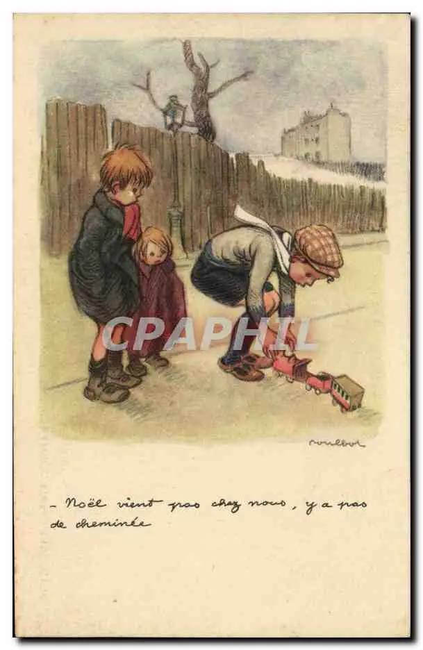 Cartes postales Fantaisie Enfants illustrateur Poulbot Train Ligue nationale contre le taudis