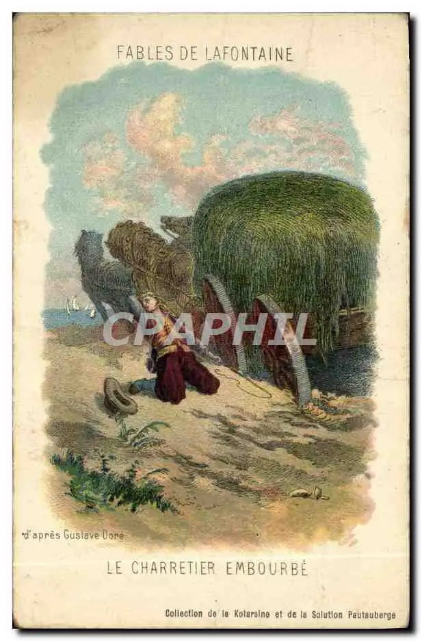 Cartes postales Fantaisie Fables de Lafontaine Le charretier embourbe