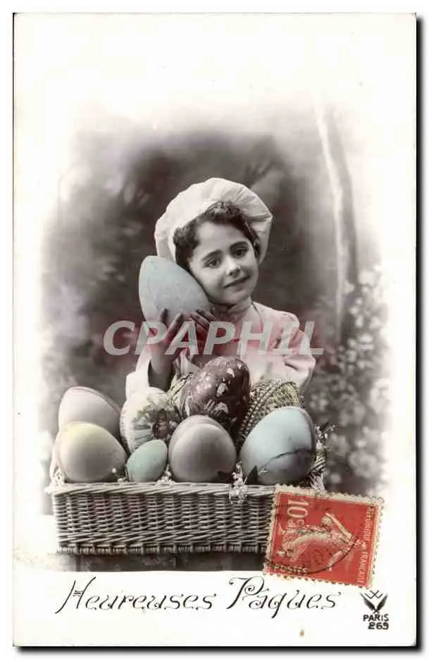 Cartes postales Fantaisie Fantasy Heureuses Paques Easter Enfant Oeufs