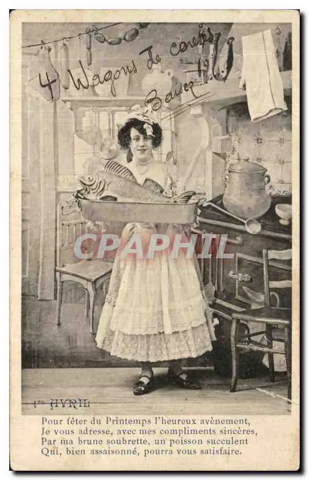 Cartes postales Fantaisie Femme 1er Avril Poisson