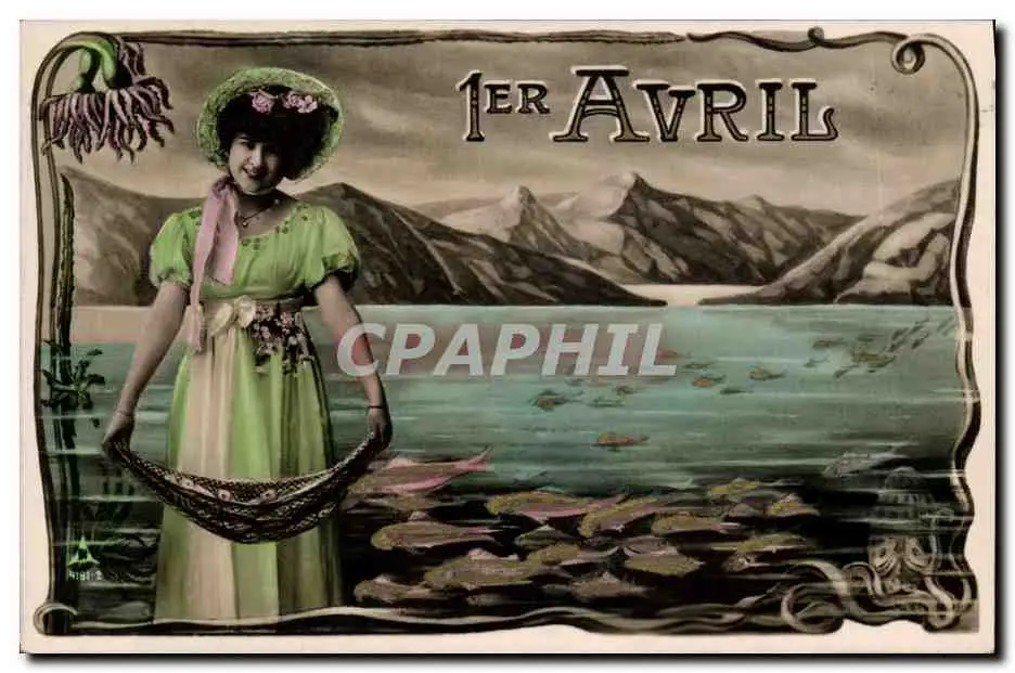 Cartes postales Fantaisie Femme 1er Avril Poissons Pieuvre Poulpe