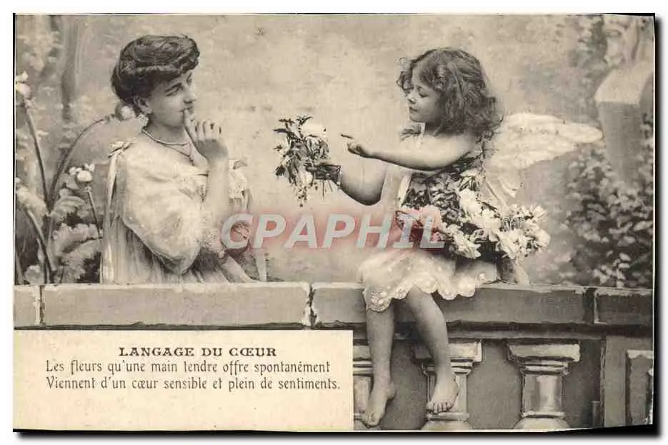 Cartes postales Fantaisie Femme Ange Langage du coeur