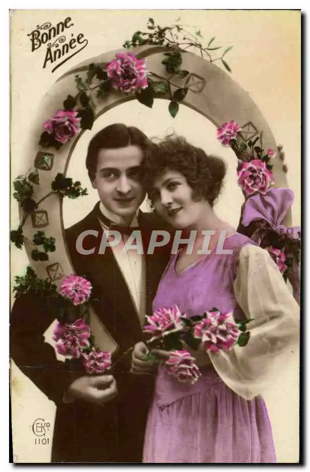 Cartes postales Fantaisie Femme Bonne Annee Fer a cheval
