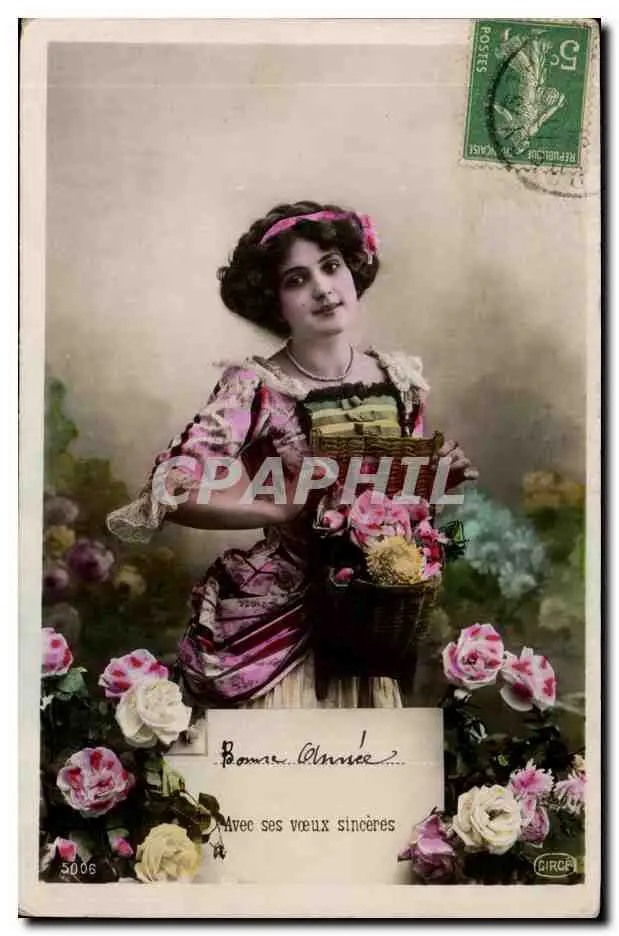 Cartes postales Fantaisie Femme Bonne annee avec mes voeux sinceres