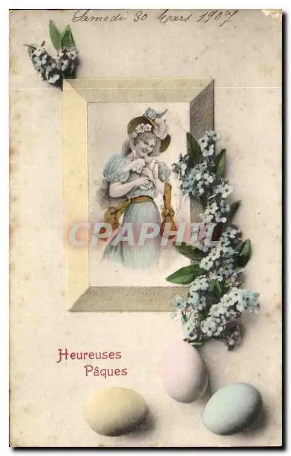 Cartes postales Fantaisie Femme Oeufs Paques