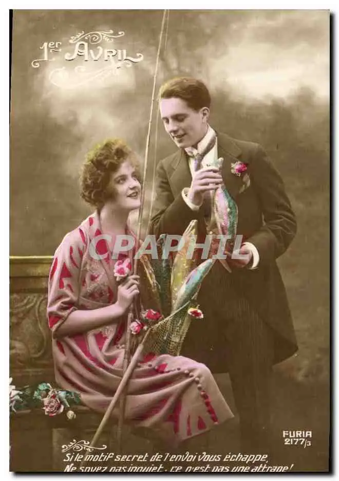 Cartes postales Fantaisie Femme Poissons 1er Avril