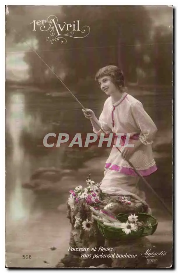 Cartes postales Fantaisie Femme Poissons 1er avril Paques