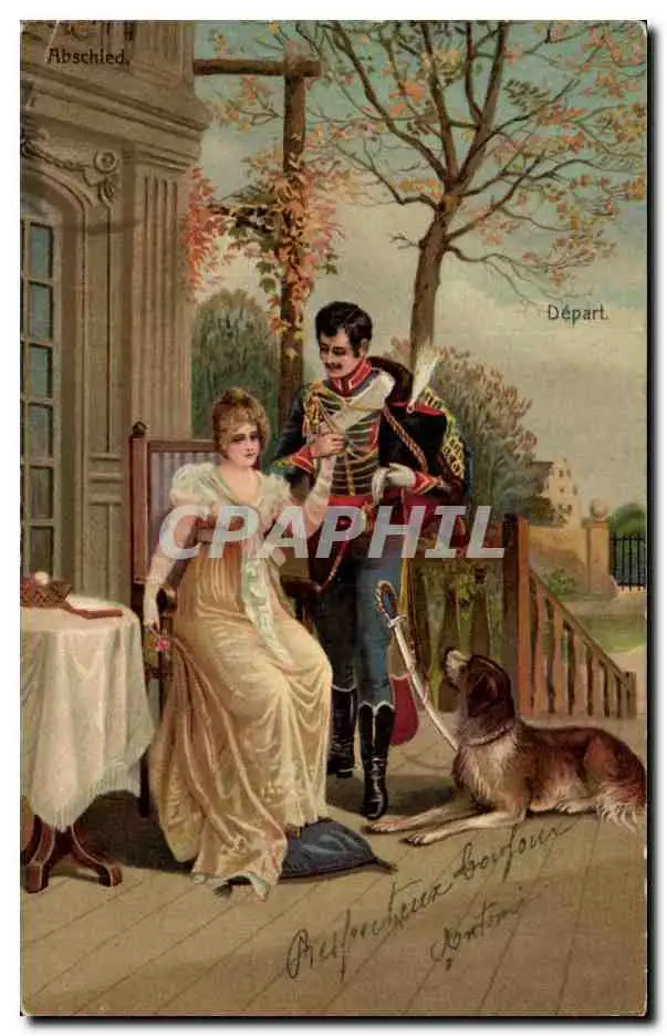 Cartes postales Fantaisie Femme et militaire en uniforme chien dog
