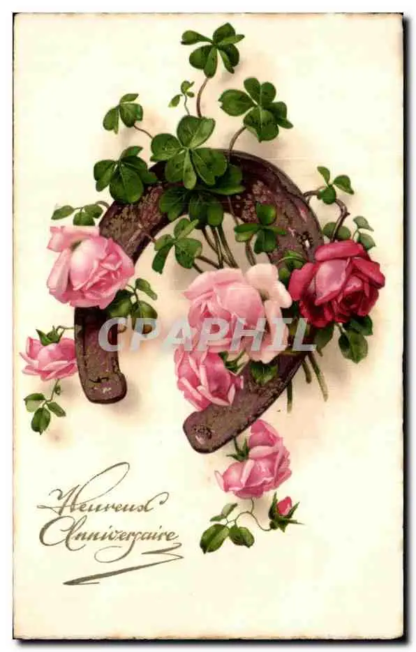 Cartes postales Fantaisie Fleur Heureux Anniversaire Fer a cheval
