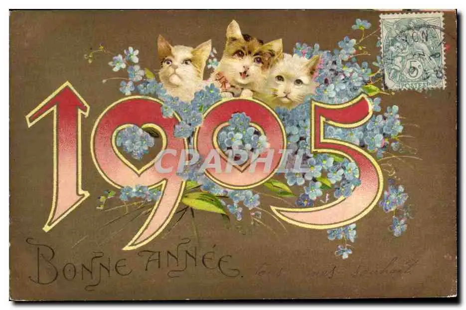 Cartes postales Fantaisie Fleurs Annee 1905 Chats Chat chaton