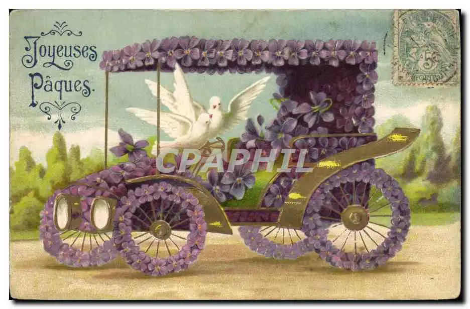 Cartes postales Fantaisie Fleurs Automobile Colombe
