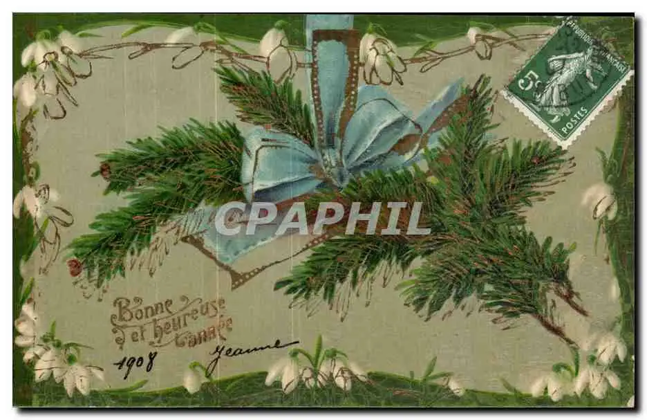 Cartes postales Fantaisie Fleurs Bonne et heureuse annee Pin Sapin