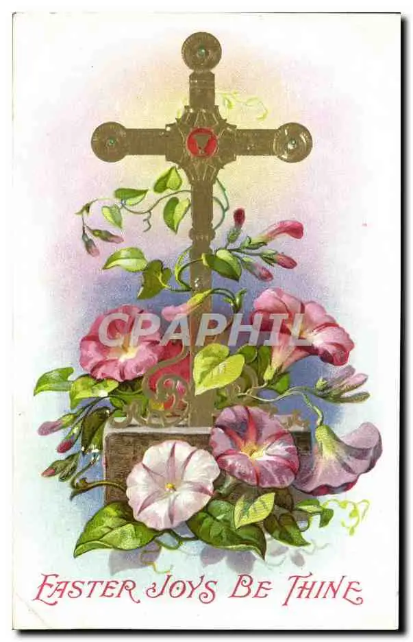 Cartes postales Fantaisie Fleurs Croix Paques