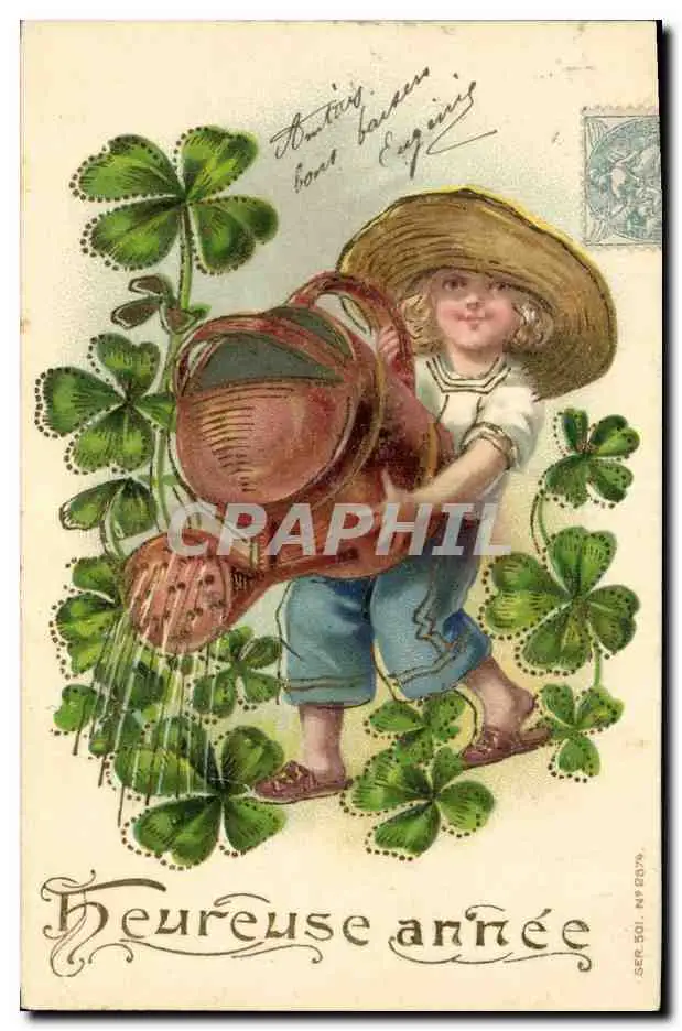 Cartes postales Fantaisie Fleurs Enfant Trefles
