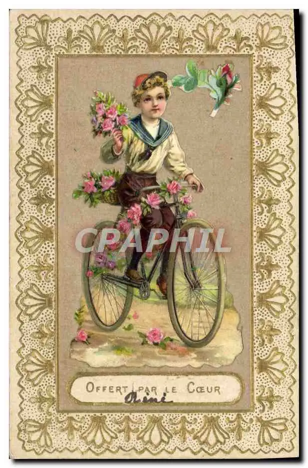 Cartes postales Fantaisie Fleurs Enfant Velo Cycle