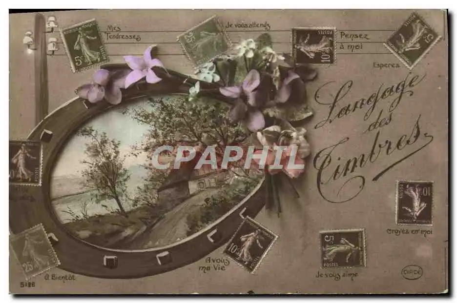 Cartes postales Fantaisie Fleurs Fer a Cheval Timbre Semeuse