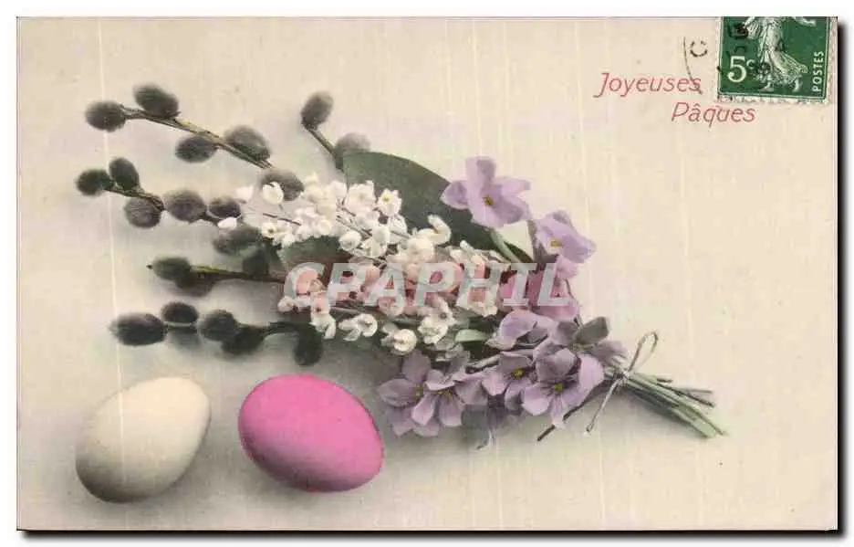 Cartes postales Fantaisie Fleurs Muguet Porte bonheur Paques ouefs Easter