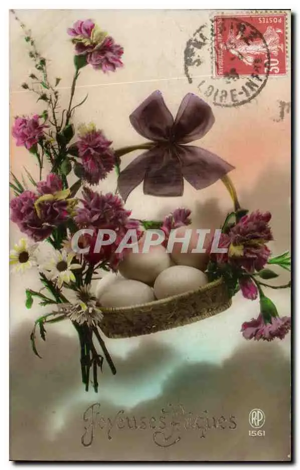 Cartes postales Fantaisie Fleurs Paques oeufs