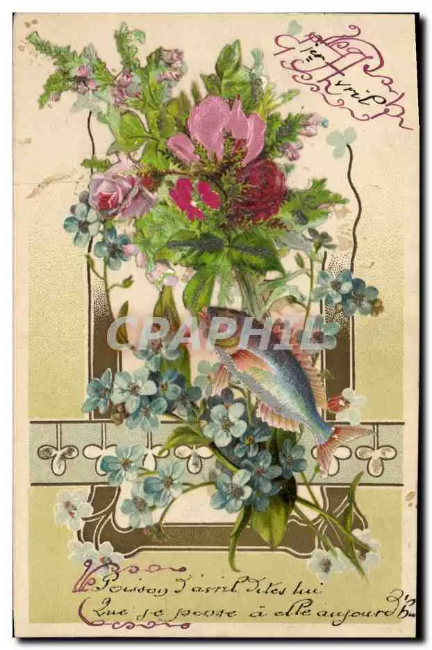 Cartes postales Fantaisie Fleurs Poisson